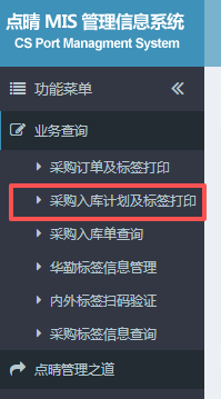点晴ERP-采购入库计划操作流程 1.登录并进入ERP系统内。输入用户名和密码。 2.进入ERP系统之后,在左侧或者上方的菜单内点击“ERP”。然后进入后,点击左侧或者上方的菜单内“仓库管理”,再点开“采购入库管理”,点击“采购入库计划”。 3.进入“采购入库计划”页面后,先点击查询,然后点击选中对应...