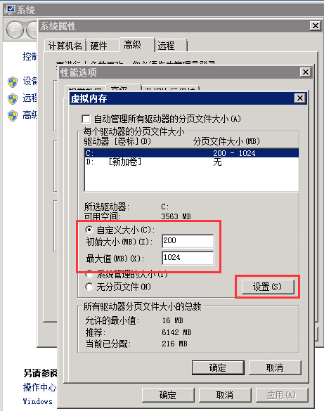 这个有可能是分页内存不足而导致的。查看分页内存不足的相关设置,进入点晴MIS系统所在的服务器,打开资源管理器—>右键我的电脑—>属性—>点击高级项卡—>设置性能,在性能选项中选择高级选项卡,在虚拟内存处显示“所有驱动器文件大小的总数:0M”,原来问题出在这里,由于操作系统的分页内存太小,而引起用户在访问ASP网站时无法执行ASP脚本。修改分页内存,我这里设置的是(200M-1024M,如果服务器内存充裕的话,可以设置的更大些)(如图):