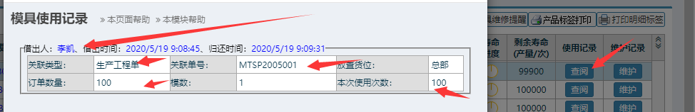 已使用寿命与系统内部借出单据相关联,如下图所示,若只提供数值,系统内无单据支持,后续查询则会找不到数量使用源头导致逻辑错误,无法追溯!