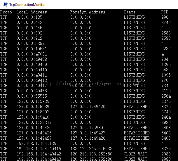15. static void MonitorTcpConnections()