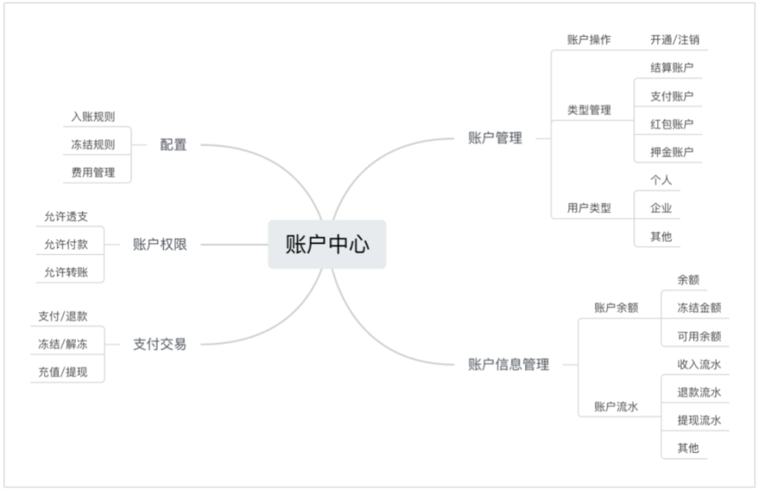 先从整体上了解账户系统的基本功能,一个基础的账户系统应该至少包含账户配置、账户管理、账户信息管理、账户权限、账户交易等模块。