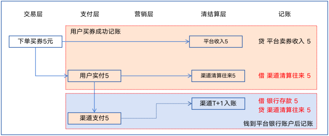 但是,这里有个问题,原来的5元怎么记,从财务视角来看,卖券是平台获得了收入了,应该记一笔收入才对,那收入什么时候记呢?......到这里其实就开始糊涂了。
