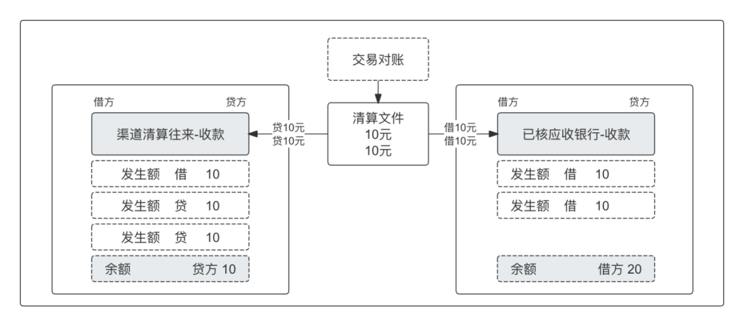 • 对账核心登记渠道已清算、已结算的账;