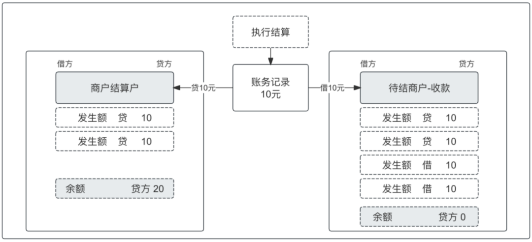 • 交易核心登记商户待结算、各类营销类记账;