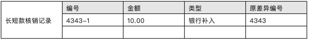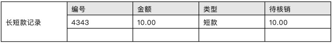 资金对账结果产生了10元的短款,系统会自动生成长短款记录