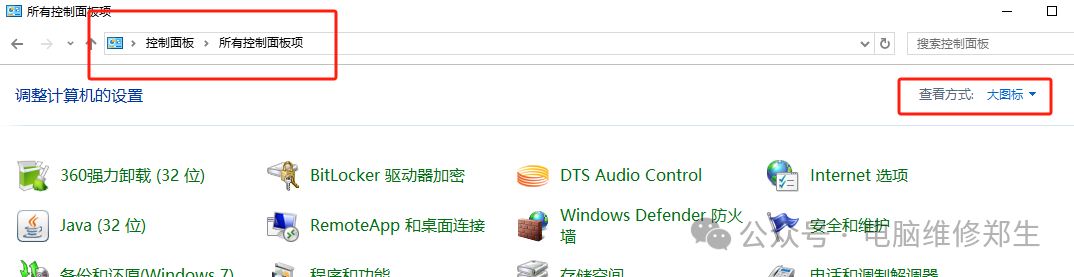 第一步:打开控制面板