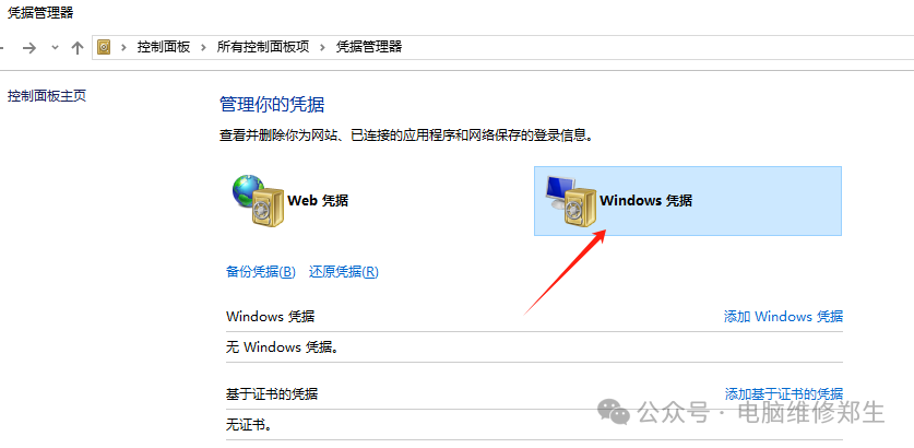 在进入控制面板的界面后,我们找到“凭证管理”。找到“凭证管理”选项后,点击打开它,会弹出一个专门用于管理凭证的窗口。