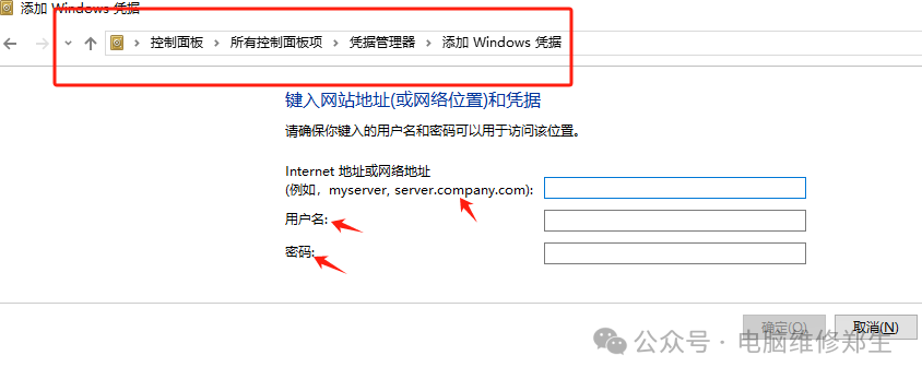 打开凭证管理窗口后,我们要点击“添加凭证”按钮。点击之后,会出现一个新的输入界面,其中有一个重要的部分是“地址栏”。在这个地址栏里,我们需要填写共享打印机主机的相关信息。这里有两种填写方式,一种是填写共享打印机主机的IP地址,另一种方式是直接填写主机的设备名称,设备名称通常是我们为这台主机自定义的一个便于识别的名称。