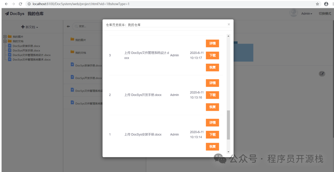 项目源码源码托管在 GitHub 和 Gitee 上,便于开发者下载、学习和二次开发。 GitHub:https://github.com/RainyGao-GitHub/DocSys/releases Gitee :https://gitee.com/RainyGao/DocSys 项目包含完整的安装包、升级包和部署说明,适合不同阶段的开发者使用: