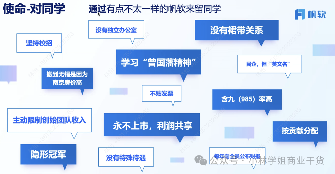 感谢帆软CEO陈炎的分享,从0-15亿+,从毕业后创业至今快20年,这是一个认知、组织、数据驱动增长的故事,是一个在无锡人才密度并不高的地方一路摸排滚打出来的实战故事。 以下是一些围绕公司管理“事、人、钱”印象深刻、引发思考的观点总结。  事情(如何管理业务及业务流程): 看十年、谋三年、干一年:十年确认战略、财务目标、客户成功指标、专项目标,三年盘点市场空间和机会点。干一年,围绕客户、流程、组织和人才制定工作计划。 增长:有效增长——有利润的增长——消除浪费,长期增长从目标分析、财务分析开始,消除浪费这个事情要通过一线员工+文化驱动+工具来实现。  取舍和客户旅程路径的最优解思考,主动定义“有价值的事情”,利他才能利己:1)选择客户:从非标走向标准化,就意味着不给“非标”资源。2)让客户用起来并分享:搬运最佳实践:让客户用起来,以标杆客户为核心考核,3)实施:帮助客户培养数字人才,利他到利己,65%来自产品,35%来自实施服务。  学习标杆、落地适配帆软不同阶段的“业务流程”和规则: 当年最早没有资源、也不知道管理,就在天涯学习华为的管理方法。通过学习不断在建立自己的业务流程,比如LTC的落地适配,赢单的流程对应能力训战。这点让我挺感慨,因为一大票创业公司会觉得大公司那套没用,但关键不是套着用,是理解并针对性适配。 比如所有人都说以客户为中心,落到组织里的规则是:接投诉电话,10秒内不接就转到创始人。  数据驱动,先BI自己:市场空间、业务流程、个人绩效等等。 20%的人因为相信所以看见,80%的人还是要看到各种数据来相信,比如公司的客户空间。 也通过数据推进管理。比如流程关键控制点分析,管理线索、机会、应收。比如从经营、业务、科目、专项上纲举目张。同样通过数据分析来看市场leads和销售转化到底“谁有理”。  人(建立和落实组织文化): 创始团队的决策机制——共识营:无法什么事情都聊(吵不完),只探讨最重要的几个事,让战略、客户、组织、文化、分配达成共识。 同学文化:团队成员主要来自校招,因此称呼团队为同学。校招的筛选标准是招优秀的人,也会通过考试去看他们的底层逻辑———学习能力。而不是只看“学历”,或者让学历高的人觉得大家要为他服务。 公开财务报表:大家连父老乡亲可能都觉得公司赚大钱了,实际上通过报表才知道费用和成本是多么高,更能够“上下同欲”。 永远思考怎么让流程最短:比如不贴发票,报销慢影响应届生体感。业务团队服务客户,本部团队服务业务团队,合伙团队服务本部团队落地。甚是通过财务体系优化来实现了“降本”。 没有裙带关系:“不因为自己哥哥过得一般,就给他介绍生意”  钱(思考如何分配、激励,才能让事情和组织转得更好): 以贡献者为本,“不是对所有人好”:基于利润、客户满意度生成薪酬包,按照梯队核心进行“激励分配”。事先约定有价值的东西:针对山头项目给奖金。 财务核心指标中除了关注净回款、人均净回款、储备金,也关注人均可支配薪酬和研发投入——很大提高人才质量。提高可支配薪酬。 总而言之,围绕目标管理、流程建设和运营、精益管理和分配不断下功夫。 最让我感动的是,我问最早怎么招到人,他说是“真诚和愿景”,有的人选聊了8个小时,第二天还带着他去跑客户去感受。而当年吹过的“牛逼”现在也算是实现了。第二是谈及不上市时候他说,是为了“留住同学”,如果他是马斯克,当然可以“拿的最多”,而他认为、自己不是,而是同学们在创造“更大的价值”,所以要“克制”。   “虽然我们参与的同一场竞争,但是我们彼此看到的却是不同的作战地图”。因为相信,所以看见。 阅读原文:https://mp.weixin.qq.com/s/BOQ7NnQgUcDrEAsln1rL7A 该文章在 2025/9/20 11:08:30 编辑过 | 关键字查询 相关文章 正在查询... |