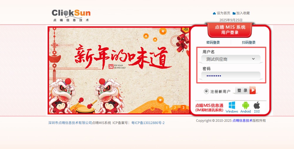:点晴ERP-采购入库计划操作流程![]() 1.登录并进入ERP系统内。输入用户名和密码。