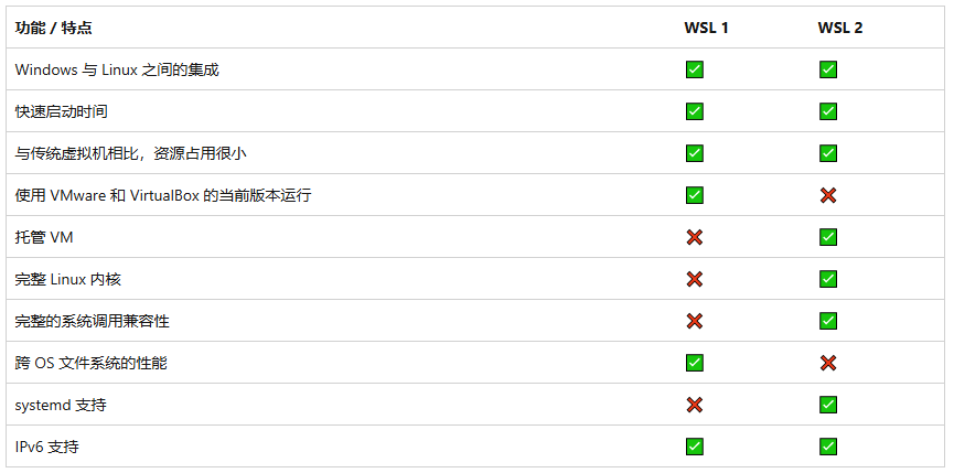 ‌WSL1‌:基于动态翻译层,将Linux系统调用转换为Windows NT调用,没有真正的Linux内核。因此不支持需要完整系统调用兼容性的应用(如Docker),且部分系统功能(如systemd)不可用。‌