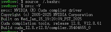 通过source命令使环境变量生效,然后即可查看nvcc版本信息。