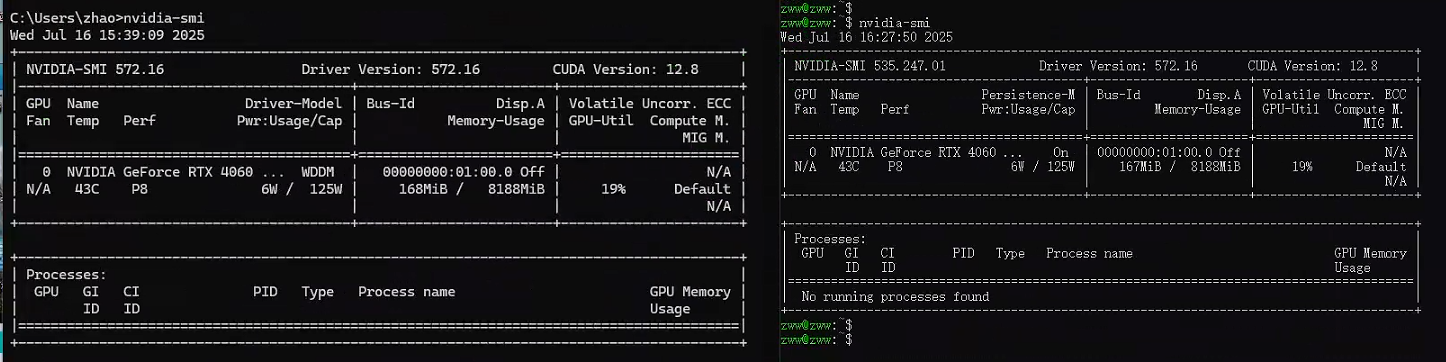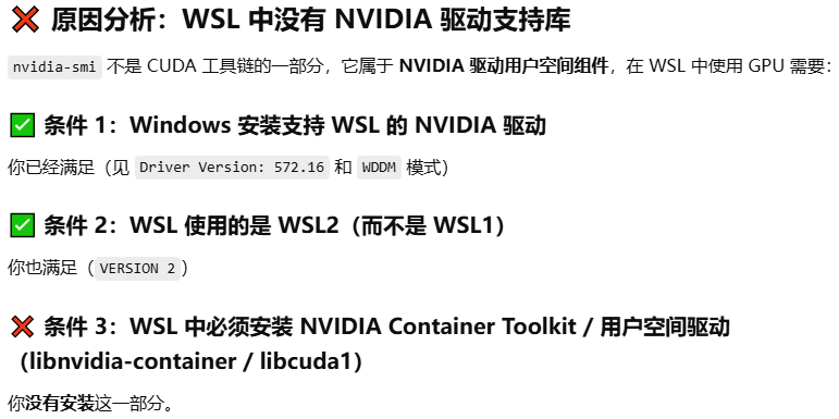 上面版本号(如 535)要与你 Windows 中的驱动版本一致或兼容(你当前是 572,可以试安装 nvidia-utils-525 或 535)。