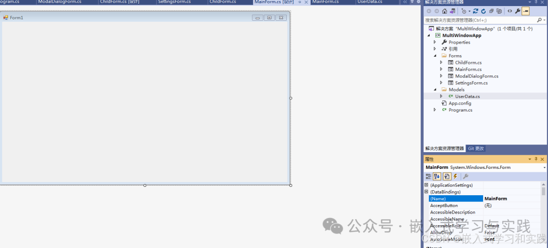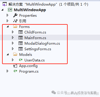 using System;using System.Collections.Generic;using System.ComponentModel;using System.Data;using System.Drawing;using System.Linq;using System.Text;using System.Threading.Tasks;using System.Windows.Forms;using MultiWindowApp.Forms;using MultiWindowApp.Models;namespace MultiWindowApp{    public partial class MainForm : Form    {        private List<Form> openChildForms = new List<Form>();        private List<UserData> userList = new List<UserData>();        private AppSettings settings = new AppSettings();        // UI 控件        private MenuStrip mainMenu;        private ToolStrip toolStrip;        private StatusStrip statusStrip;        private Panel contentPanel;        private ListBox listBoxUsers;        public MainForm()        {            InitializeComponent();            InitMainForm();            UpdateStatus("应用程序已启动");        }        private void InitMainForm()        {            // 主窗体设置            this.Text = "多窗口应用示例 - 主窗口";            this.Size = new Size(800600);            this.StartPosition = FormStartPosition.CenterScreen;            this.WindowState = FormWindowState.Maximized;            //// 创建菜单            //CreateMainMenu();            // 创建工具栏            CreateToolStrip();            // 创建状态栏            CreateStatusStrip();            // 创建内容区域            CreateContentArea();        }        private void CreateMainMenu()        {            mainMenu = new MenuStrip();            // 文件菜单            ToolStripMenuItem fileMenu = new ToolStripMenuItem("文件(&F)");            fileMenu.DropDownItems.Add("新建(&N)"null, (s, e) => CreateNewUser());            fileMenu.DropDownItems.Add("打开(&O)"null, (s, e) => OpenUserData());            fileMenu.DropDownItems.Add("-"); // 分隔符            fileMenu.DropDownItems.Add("退出(&X)"null, (s, e) => Application.Exit());            // 窗口菜单            ToolStripMenuItem windowMenu = new ToolStripMenuItem("窗口(&W)");            windowMenu.DropDownItems.Add("新建子窗口(&N)"null, (s, e) => OpenChildForm());            windowMenu.DropDownItems.Add("模态对话框(&M)"null, (s, e) => OpenModalDialog());            windowMenu.DropDownItems.Add("-");            windowMenu.DropDownItems.Add("层叠(&C)"null, (s, e) => LayoutMdi(MdiLayout.Cascade));            windowMenu.DropDownItems.Add("水平平铺(&H)"null, (s, e) => LayoutMdi(MdiLayout.TileHorizontal));            windowMenu.DropDownItems.Add("垂直平铺(&V)"null, (s, e) => LayoutMdi(MdiLayout.TileVertical));            windowMenu.DropDownItems.Add("排列图标(&A)"null, (s, e) => LayoutMdi(MdiLayout.ArrangeIcons));            // 设置菜单            ToolStripMenuItem settingsMenu = new ToolStripMenuItem("设置(&S)");            settingsMenu.DropDownItems.Add("应用设置(&A)"null, (s, e) => OpenSettingsForm());            mainMenu.Items.AddRange(new ToolStripMenuItem[] { fileMenu, windowMenu, settingsMenu });            this.MainMenuStrip = mainMenu;            this.Controls.Add(mainMenu);        }        private void CreateToolStrip()        {            toolStrip = new ToolStrip();            // 添加工具按钮            ToolStripButton newUserBtn = new ToolStripButton("新建用户"null, (s, e) => CreateNewUser());            ToolStripButton childFormBtn = new ToolStripButton("子窗口"null, (s, e) => OpenChildForm());            ToolStripButton modalBtn = new ToolStripButton("模态对话框"null, (s, e) => OpenModalDialog());            ToolStripButton settingsBtn = new ToolStripButton("设置"null, (s, e) => OpenSettingsForm());            toolStrip.Items.AddRange(new ToolStripItem[] {                newUserBtn, childFormBtn, modalBtn,                new ToolStripSeparator(), settingsBtn            });            this.Controls.Add(toolStrip);        }        private void CreateStatusStrip()        {            statusStrip = new StatusStrip();            ToolStripStatusLabel statusLabel = new ToolStripStatusLabel("就绪");            statusLabel.Spring = true;            statusLabel.TextAlign = ContentAlignment.MiddleLeft;            ToolStripStatusLabel timeLabel = new ToolStripStatusLabel();            timeLabel.Text = DateTime.Now.ToString("yyyy-MM-dd HH:mm:ss");            // 更新时间            Timer timer = new Timer();            timer.Interval = 1000;            timer.Tick += (s, e) => timeLabel.Text = DateTime.Now.ToString("yyyy-MM-dd HH:mm:ss");            timer.Start();            statusStrip.Items.AddRange(new ToolStripItem[] { statusLabel, timeLabel });            this.Controls.Add(statusStrip);        }        private void CreateContentArea()        {            contentPanel = new Panel();            contentPanel.Dock = DockStyle.Fill;            contentPanel.BackColor = SystemColors.Window;            // 创建用户列表            listBoxUsers = new ListBox();            listBoxUsers.Dock = DockStyle.Left;            listBoxUsers.Width = 250;            listBoxUsers.SelectedIndexChanged += ListBoxUsers_SelectedIndexChanged;            // 添加一些示例数据            userList.Add(new UserData { Name = "张三", Age = 25, Email = "zhangsan@example.com" });            userList.Add(new UserData { Name = "李四", Age = 30, Email