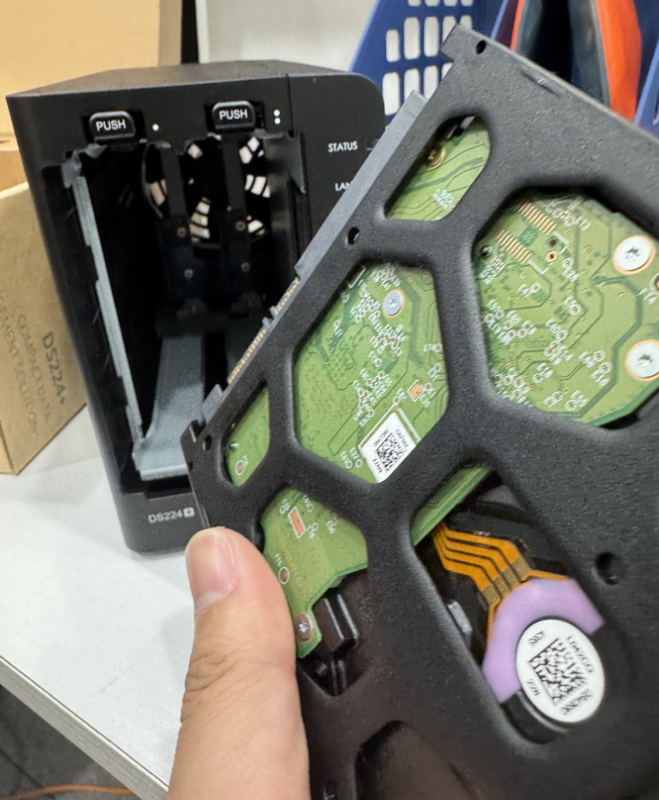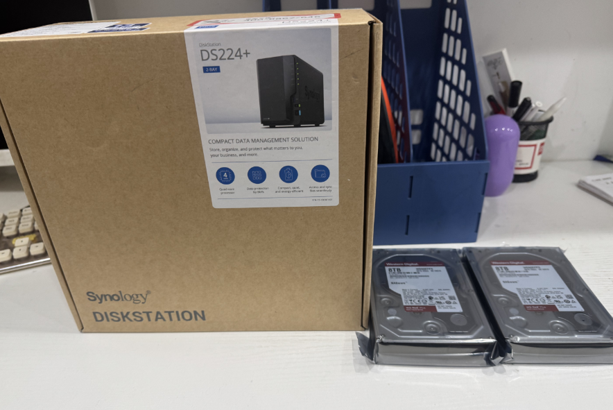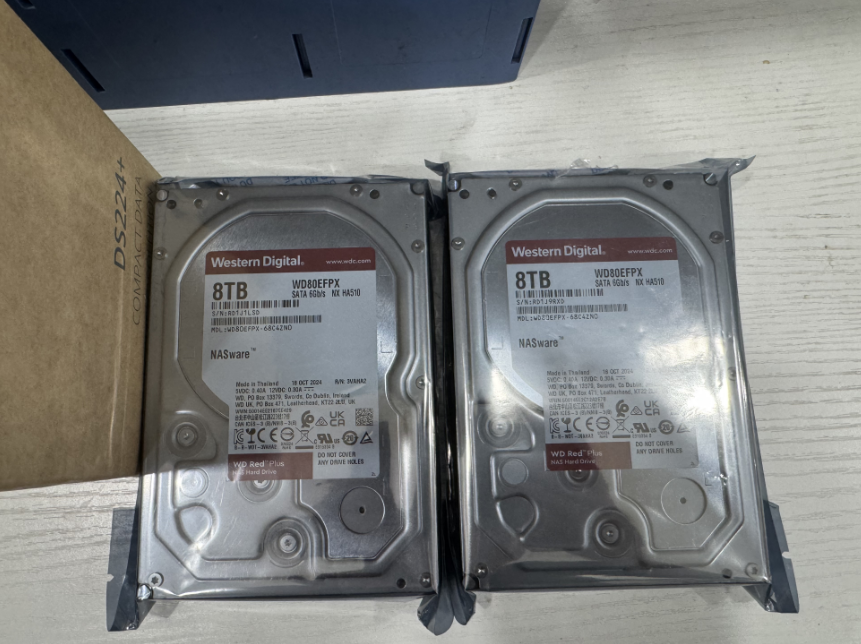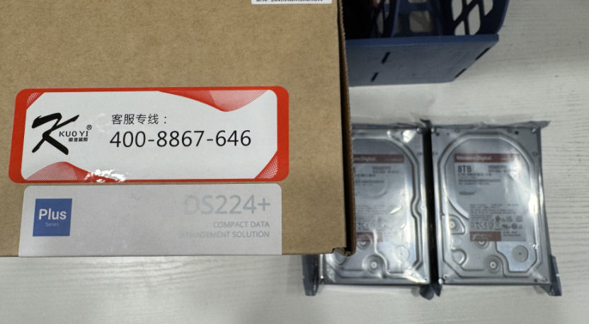客户一个DS224+,外加两个8T WD的红盘。