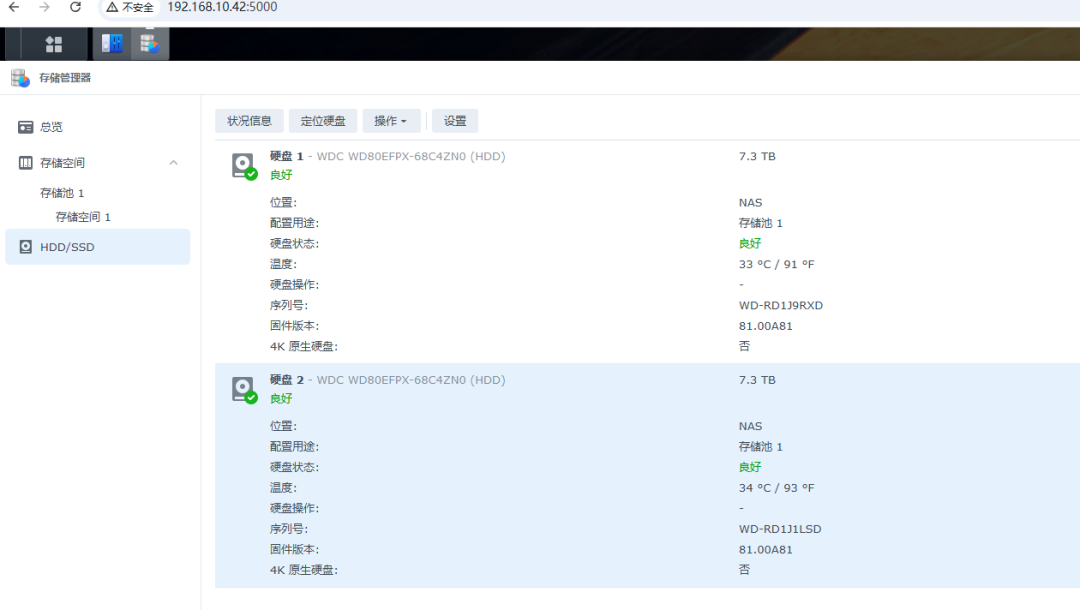 现在两块硬盘都已经安装到NAS中了。